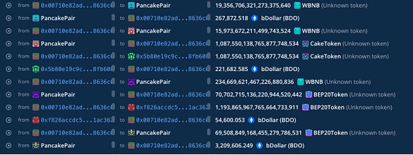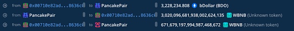 2、 將其分成多份分別轉入到WBNB/BDO、BUSD/BDO等多個池子進行兌換,拉高BDO的價格。