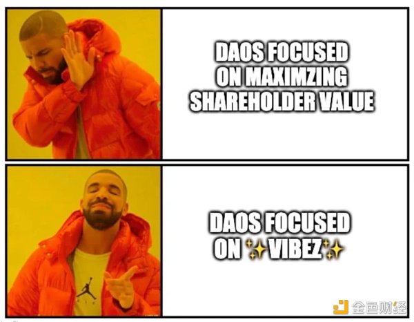 與傳統的初創公司不同,大多數社區 DAO 的最初目標不是最大化股東價值,而是形成有共鳴的氛圍。人們希望被志同道合的人包圍,做出集體決定,并推動社區的目標向前發展。