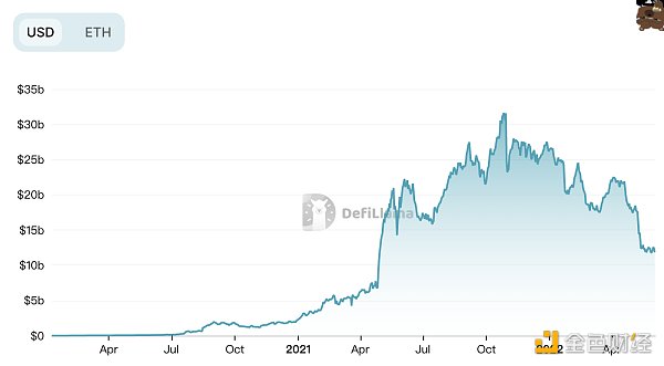 雖然當下正值新一輪的加密熊市,但是DeFi市場的體量相比2年前是巨額的增長。根據Defi Llama的數據,截至2022年5月31日,DeFi應用中的TVL為1286.5億美元,與兩年前2020年5月31日的11億美元相比,增長約116倍;但與高點2021年12月3日的2779.8億美元相比,下降了53.7%。這兩年中,頭部的DeFi項目建立起了品牌護城河,同時還不斷創新迭代新版本,為市場提供更好的產品。