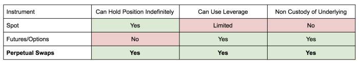 永續期權在學術界已有很多討論,比如美式 call option 的不行權,put option 的解析解等。但期權對于用戶來講,最大的門檻在于:1 理解期權和標的物的關系;2 期權與期貨相比,提供了哪些額外的好處,可以讓用戶至少在兩者之間進行等價的選擇。由于歷史原因和產品復雜度的原因,大部分用戶,都是以期貨起家的。
