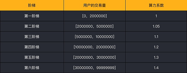 如果用戶的交易量超過第六階梯的交易量,則按照第六階梯的算力系數計算。