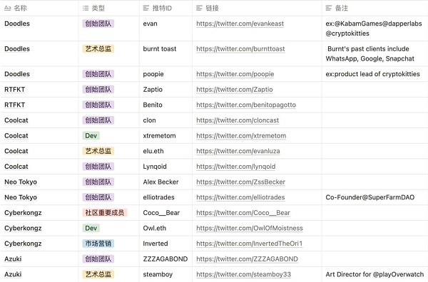 我們也會持續更新這些NFT大佬的相關信息,也希望和廣大用戶共建一個co-founder list。