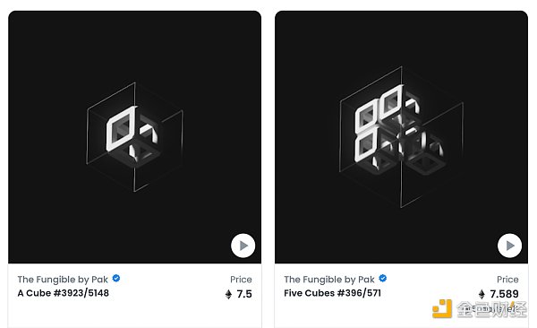 The Fungible?是 Pak 與世界頂級拍賣巨頭蘇富比攜手,在 Nifty Gateway 上發布的作品。The Fungible 中文譯為「同質化」,與 NFT 正好相反,作品是開放版的小方塊。