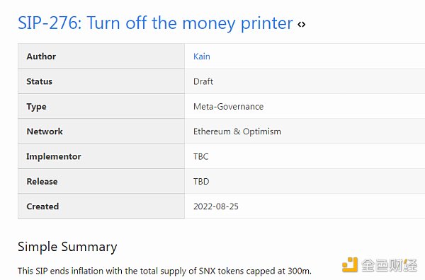 不過在2022年8月25日,Synthetix創始人Kain Warwick提交了一份提案SIP276,該提案將結束SNX通貨膨脹,將SNX總供應量限制在3億。