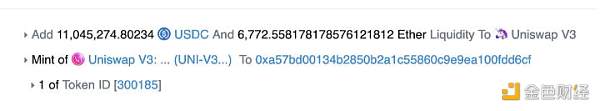 我們有三筆交易,都在區塊15413416,位置 3-5,以自下而上的順序執行。第一個使用 Execute 方法的交易是一個名為“MEV Bot”的合約,為 USDC-WETH 池增加了 2200 萬美元的流動性。