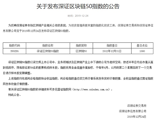 尤其是12月24日,深交所發布了深證區塊鏈50指數,引發行業關注。