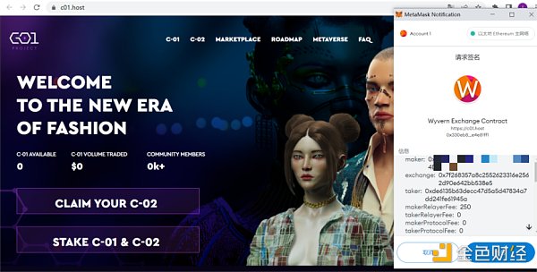 進入網站連接錢包后,立即彈出簽名框,而當我嘗試點擊除簽名外的按鈕都沒有響應,看來只有一張圖片擺設。