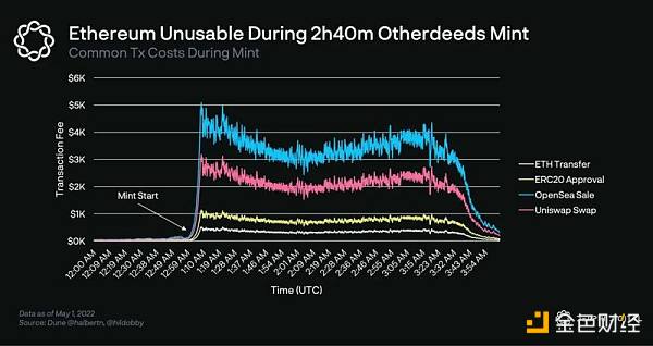 在 Otherdeeds 鑄幣期間,ETH 轉賬超過 500 美元/tx