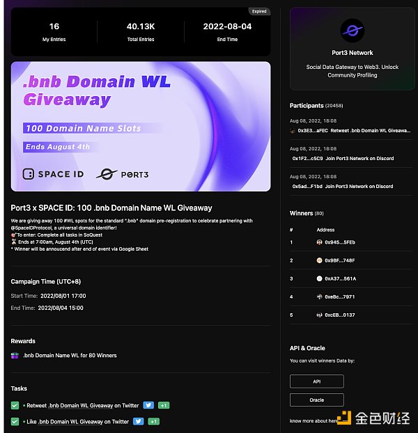 7 月 28 日,Port3 已經發布 SoQuest 解決方案并提供 API 支持,而在即將到來的 9 月,Port3 將構建 BNB Chain Action Parser,以實現更大規模的鏈上數據聚合。