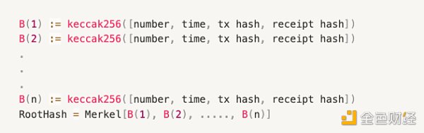 綜上,該值是 Bor 區塊頭中的區塊號 number、區塊時間戳 time、交易樹根 Hash 值 tx hash、收據樹根 Hash 值 receipt hash 計算得到的 keccak256 哈希值構成的 Merkel tree 的根哈希值。
