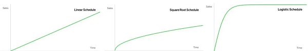 其中P0是NFT目標價格;k是沒有達到預期銷量時NFT價格的衰變因子,f(t)是時間表,在t時間點預期賣出n個NFT。通過代入不同的f(t),我們能得到不同的銷售機制。Paradigm在文中僅討論了三種情況,不過理論上任何形式的時間表都可以被實現。如果發行方選擇以恒定的速度線性釋放NFT,比如每天釋放10個,這就是簡單的GDA。如果發行方期望隨著時間來調整發行的數量,則需要VRGDA。比如發行方要發行一個無限供應的NFT,并且預計在發行之初能制造更多的熱度,因此計劃在早期釋放更多的NFT,隨著時間的推移,釋放的NFT數量遞減,那么可以選擇開方函數代入。如果發行方想在早期更加激進的釋放NFT,且不希望NFT無限通脹,那么可以選擇對數函數來實現。
