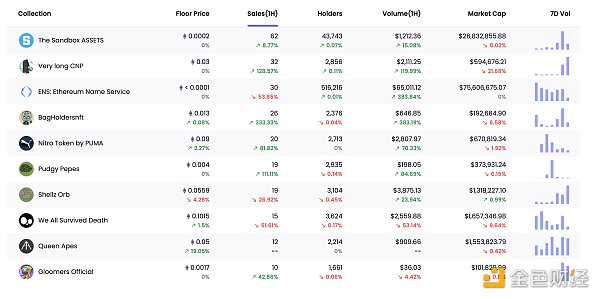 24小時內銷售漲幅前十的NFT 數據來源:NFTGO