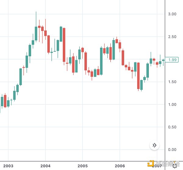 因為貨幣政策不確定性,震蕩期長達3年,Amazon的股票在2004年內跌了15%,2005年回漲了8%,正當大家以為它又要崛起的時候,在2006月又跌了17%,震蕩結束后,累計比2003年的高點跌去了20%。如果說2000年是暴力崩盤,2004-2006年則是慢慢消耗投資人的耐心,是一個難熬的階段。