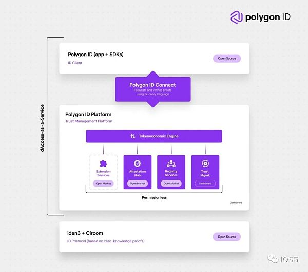 Polygon最近宣布了他們的Polygon ID產品,工作方式與Sismo類似。他們專注于Polygon鏈上錢包的活動證明,并幫助生成ZK證明作為驗證機制。用戶側的關鍵產品是下圖所示的身份應用和ID客戶端工具包,其中有相關的API和SDK供開發者/dApps/用戶整合。