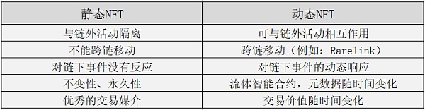 下圖可以完整的看到靜態和動態 NFT 之間的對比:
