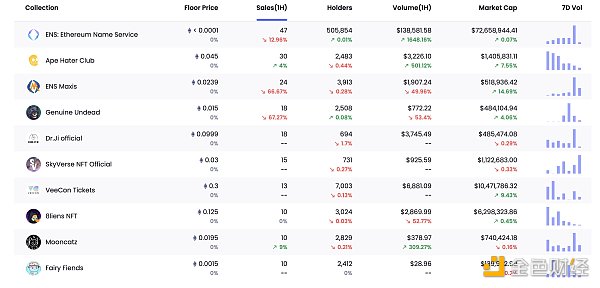 24小時內銷售漲幅前十的NFT 數據來源:NFTGO