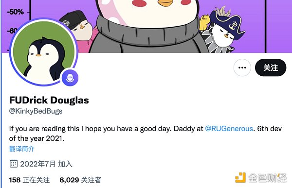 舉例來說,近日,用戶名為 KinkyBedBugs 的 Twitter 用戶花費了 400 ETH 購買了一只胖企鵝(Pudgy Penguins)NFT,并將其用作自己的 Twitter 頭像。