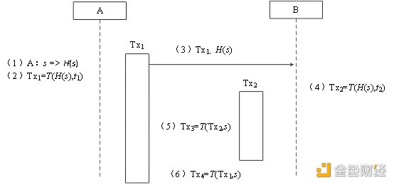 2)將H(s)值通過網絡發送給另一條鏈上的用戶B;