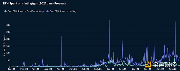 然而,如果與 2021 年相比,2022 年 NFT 鑄造者在鑄造和交易費用上都花費了更多的 ETH。在此期間,一些引人注目的 NFT 鑄造項目包括 MAYC、Pixelmon、Meebit 和 Lost Poets。