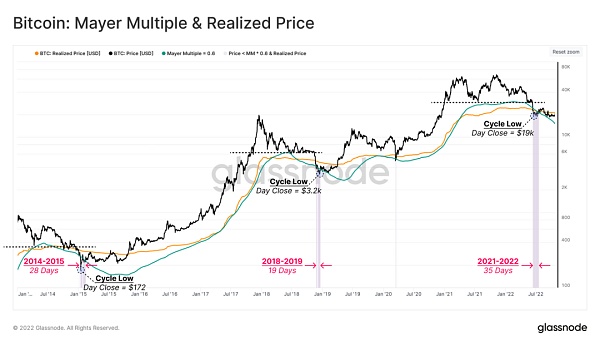 圖表 2比特幣:梅耶爾乘數和實現價格