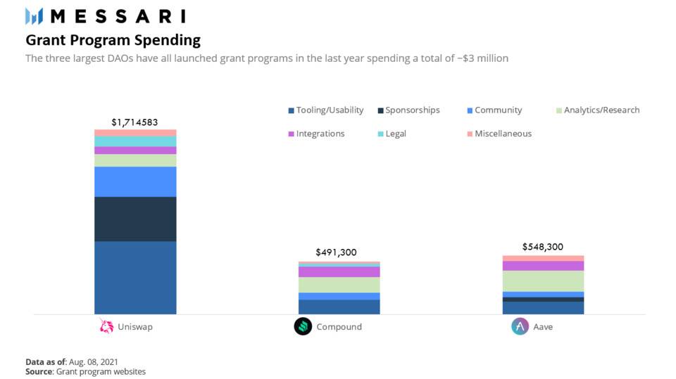 在過去的一年中,3 個最大的 DAO 建立了資助計劃,開始資助增加價值的活動。 這已為許多不同的人和組織提供了約 300 萬美元,這些人員和組織正在幫助構建更好的工具、與更多協議集成、提供更多數據和研究、舉辦活動等等。
