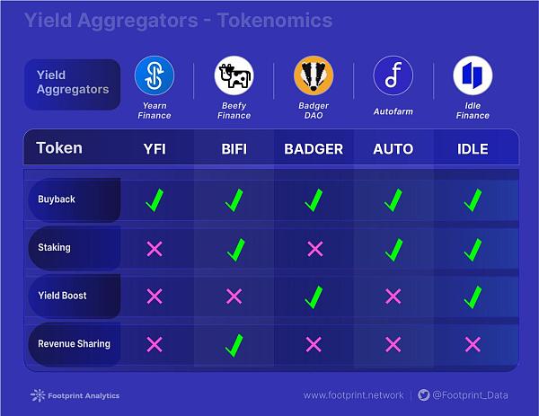 每個收益聚合器對其原生 token 都有不同的策略。Badger 和 Idle 用它來提升保險庫中的獎勵。所有協議都用利潤執行回購,以降低流通供應。但 Beefy Finance 是唯一一個采取部分收入并與 token 持有者分享的協議(與他們的 BIFI 收益池)。