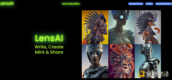 LensAI 是一個 NFT 生成器,允許使用 AI 創作圖像,然后生成 NFT 以及發布到 Mirror 上。創作者也可以將其在 Lens 協議上作為 NFT 出售。