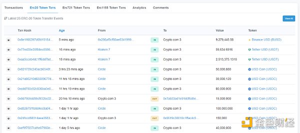 此外,穩定幣也不斷流入 Crypto.com 的其中一個儲備證明冷錢包。在過去的 30 小時內,該錢包的穩定幣凈流入了 3.057 億美元。