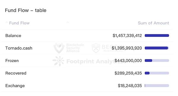 約有4.43億美元的被盜資金被交易所凍結,其主要金額來源于10月的BNB Chain事件,當時幣安立即凍結了黑客80%至90%的資金,實際損失在1億美元左右。
