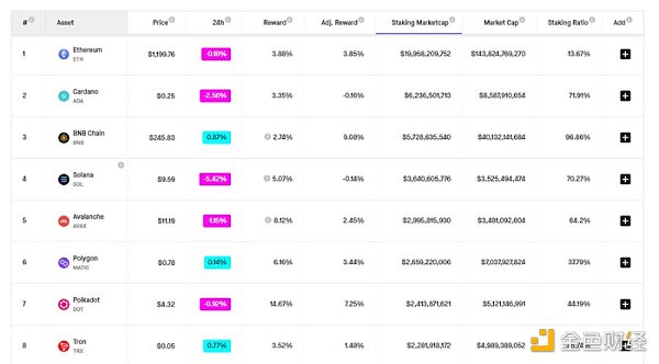 這就是為什么只有 14% 的 ETH 供應量被質押了。相比之下,大多數的 L1 有 40% 以上的質押比例。