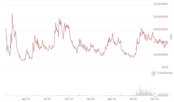 據 Nansen 稱,2021 年 10 月,使用量約為 450 萬 wETH(要參與鏈上經濟,用戶必須 Wrap 他們的 ETH),不到 ETH 總供應量的 4%。