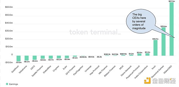 下圖列出了最賺錢的加密協議 / 應用(包括中心化和去中心化):