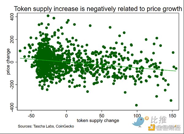 供應增長和價格之間的負面關系似乎只適用于更成熟的代幣/更大的市值。