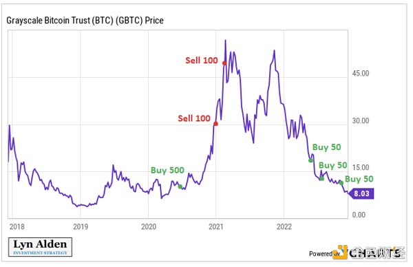 縱觀 2021 年和 2022 年,crypto 行業開始遇到周期問題。早期的問題始于灰度比特幣信托 (GBTC) 的資產凈值溢價轉向資產凈值折扣。換句話說,曾有一段時間,該基金的市場價格是 1 美元比特幣對應 1.4 美元,而現在,該基金 1 美元的比特幣,對應的市場價格已低于六十美分。