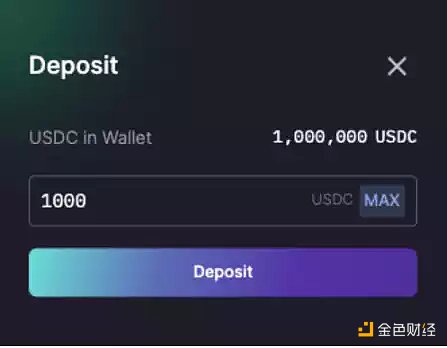 然后輸入想要做多的代幣數量,交易界面會自動充值所需的 USDC,并設置可接受滑點