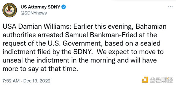 1900/1/1 0:00:00撰文:周曉雯 SBF 被捕,FTX 事件迎來最終章?據媒體報道,FTX 創始人 Sam Bankman-Fried 在巴哈馬被捕,巴哈馬稱美國對 SBF 提起刑事訴訟.