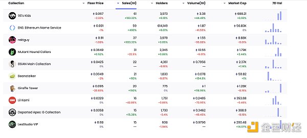 24小時內銷售前十的NFT 數據來源:NFTGO