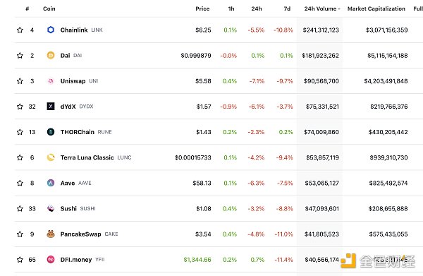 過去24小時去中心化交易所的交易量 數據來源:coingecko