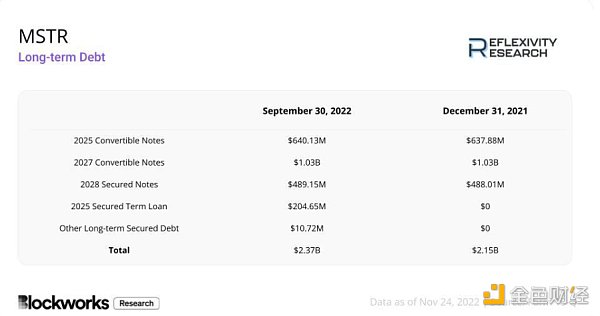 截至2022年9月30日三季度末,MicroStrategy共持有23.7億美元的長期債務。其債務情況具體細目見下表: