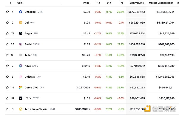過去24小時去中心化交易所的交易量 數據來源:coingecko