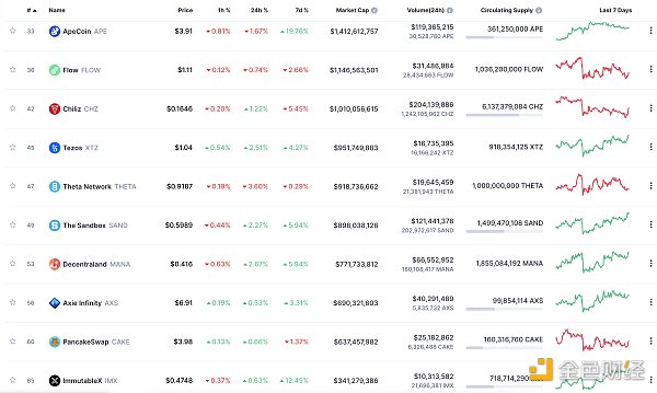 NFT總市值、市值排名前十項目 數據來源:Coinmarketcap