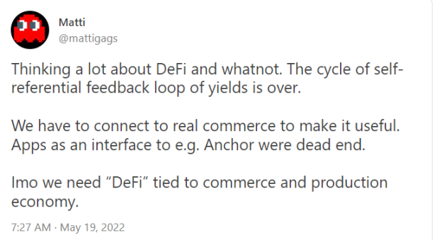 我認為我們需要與商業和生產經濟相聯系的「DeFi」。