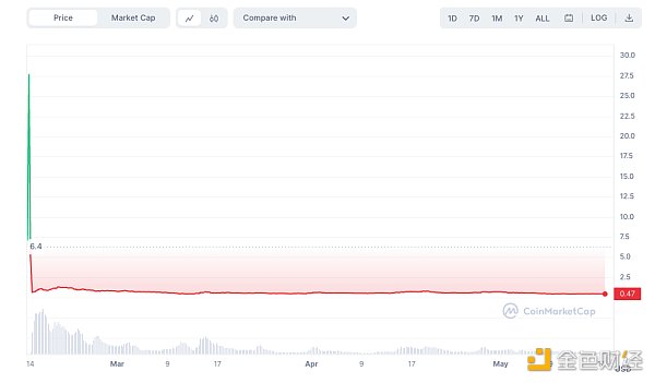 與此同時,據Coinmarketcap數據顯示,空投后3天,BLUR從$27.69暴跌至$0.65,市值一地雞毛。