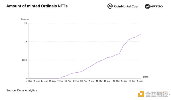 目前,BTC Ordinals 市場的交易量和數量呈上升趨勢。在四個月內,鑄造的NFT總數達到了1.19M,交易總額也達到了2000萬美元。