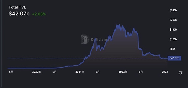 Defillama 數據顯示,過去一年,受到加密資產大幅下跌的影響,DeFi 總鎖倉量從最高超 1800 億美元降至約 390 億美元,降幅超 78%,這與傳統資產的體量不可同日而語。