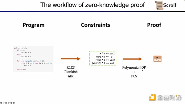 第三部分,張燁談論了一些Scroll 在構建 zkEVM 過程中有趣的研究問題,從前端的算術化電路到證明者的實現。