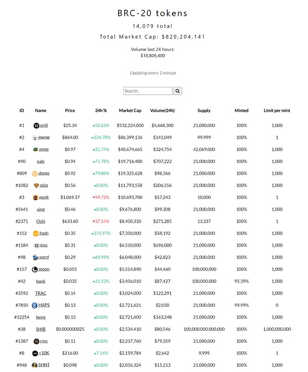 https://brc-20.io/ (該網站價格為人工更新 經常不夠實時)