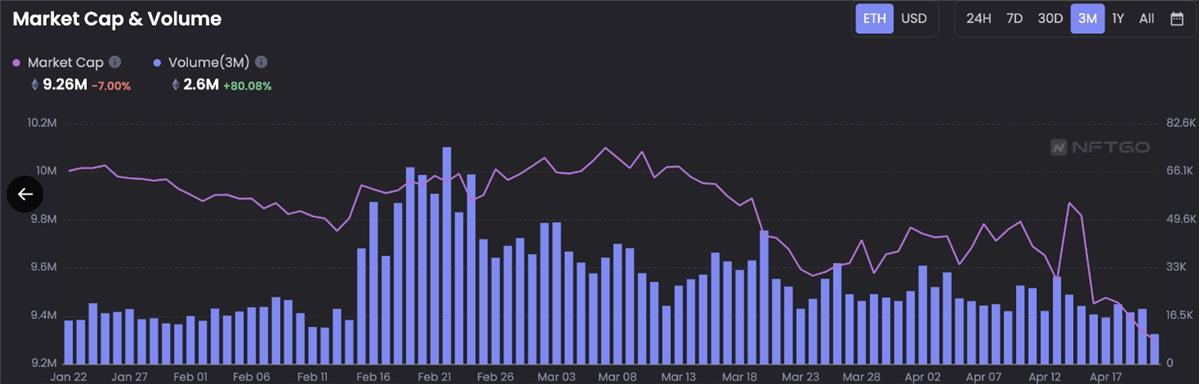 2月份以來,價量齊跌。交易量從每天3.6萬eth跌到了1萬eth;藍籌指數從9000多,跌到了7500。這期間,一眾NFT大佬黯然失色。