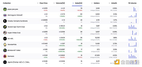 24小時內銷售前十的NFT 數據來源:NFTGO
