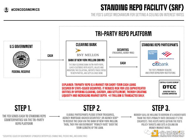 Block unicorn 注釋:「Jaws of the Fed? 」是一個術語,指的是美國聯邦儲備委員會(Federal Reserve)通過利用各種貨幣工具和技巧,試圖控制包括回購市場在內的各種貨幣市場利率,以達到其貨幣政策目標的過程。